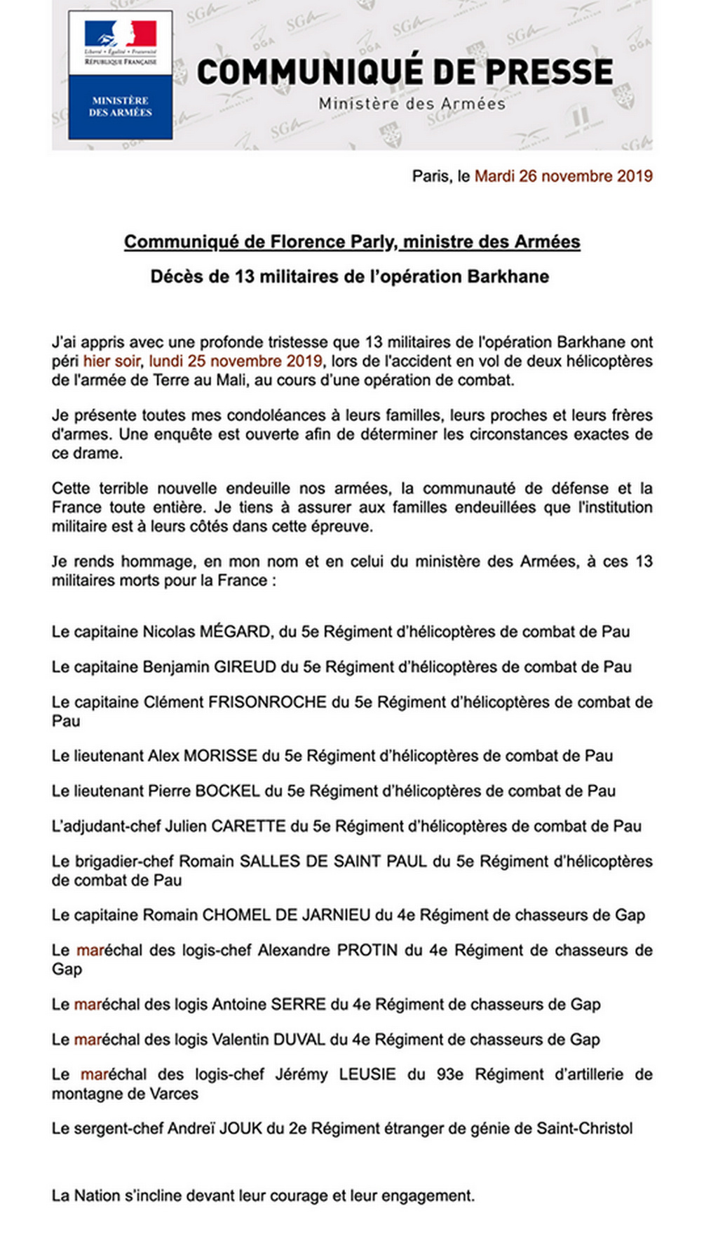 25.11.2019/ 18:35 LT W of Ménaka/ Mali Final Report (fr)